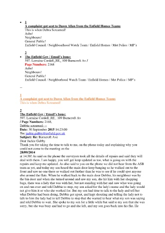 A complaint got sent to Dawn Allen from the Enfield Homes Teams