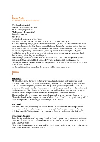 The tenants of 117 and 113 and 111 Continued to victimizing me by: -