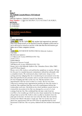 Home visit to Ms Andrews advised that her neighbour at number 109 has