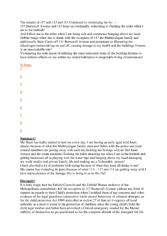 The tenants of 117 and 113 and 111 Continued to victimizing me by: --