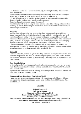 113 and 117 woke me up by assailing me intentionally by stamping and dropping articles