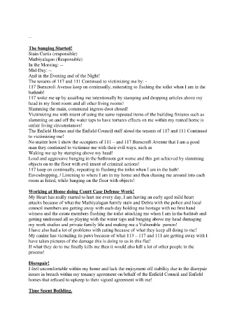 The tenants of 117 and 111 Continued to victimizing me by: -