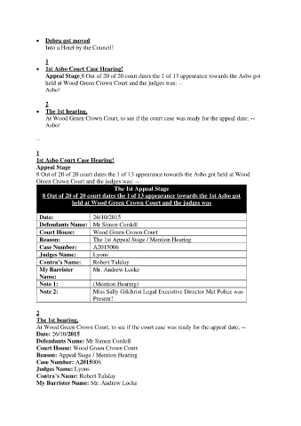 Appeal Stage 8 Out of 20 of 20 court dates the 1 of 13 appearance towards the Asbo got