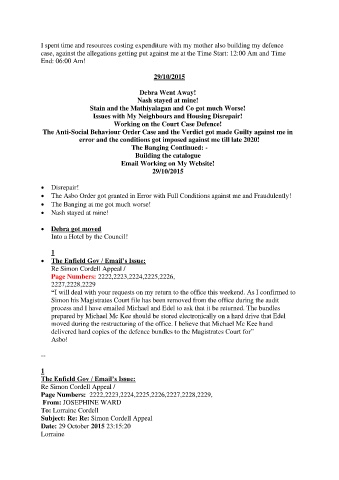 I spent time and resources costing expenditure with my mother also building my defence