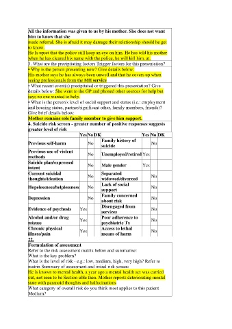 out, not seen to be Section-able then. Mother reports deteriorating mental