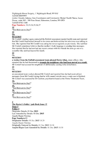 Mr Cordell’s mother again contacted the Enfield assessment mental health team and reported