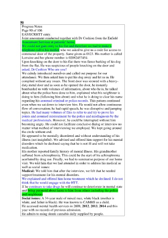Joint assessment conducted together with Dr Cushion from the Enfield