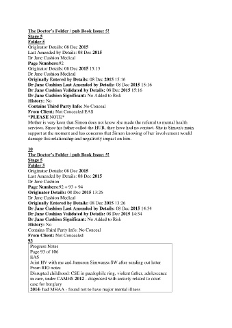 Mother is very keen that Simon does not know she made the referral to mental health
