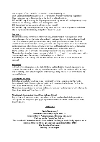 The occupiers of 117 and 113 Continued to victimizing me by: --
