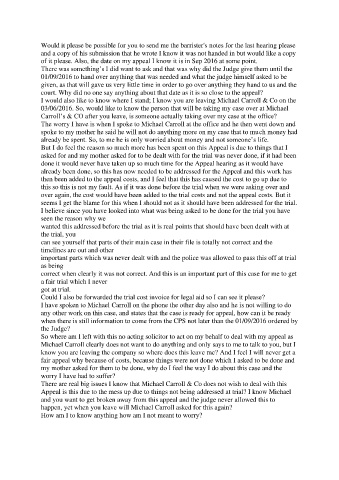 asked for and my mother asked for to be dealt with for the trial was never done, if it had been