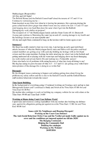 problems my safety suffers and this is due to the Enfield Councils and the Enfield Homes