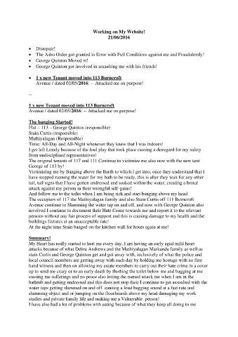 involved I continue to document their Hate Crime towards me and report it to the relevant