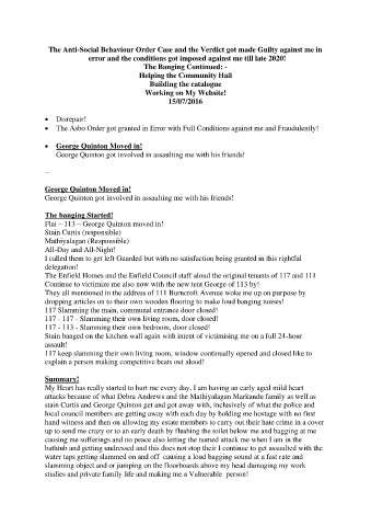 • The Asbo Order got granted in Error with Full Conditions against me and Fraudulently!