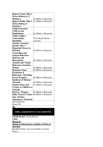 Domestic Abuse No |Refer to Research.