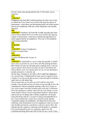 22/02/2017 Telephone call from Mr Cordell regarding the letter