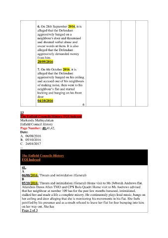 05/10/2016: Threats and intimidation (General) Home visit to Ms Deborah Andrews flat.