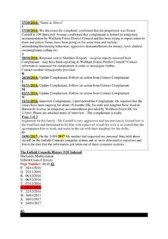 17/10/2016: We discussed the complaint; confirmed that the perpetrator was Simon