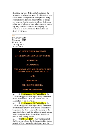 water pipes and making noise. The Defendant also