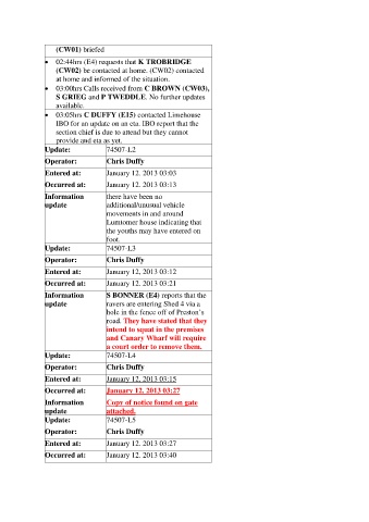 • 03:05hrs C DUFFY (E15) contacted Limehouse