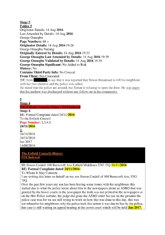 T/C from Andrew - to say that it was reported that Simon threatened to kill his neighbour