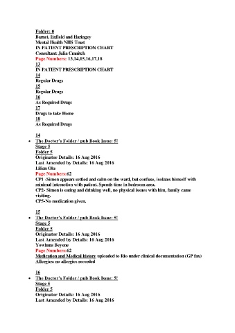 CP1 -Simon appears settled and calm on the ward, but confuse, isolates himself with