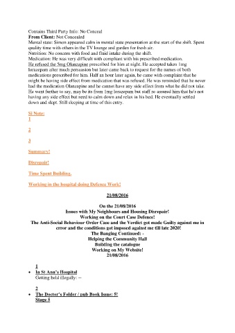 Mental state: Simon appeared calm in mental state presentation at the start of the shift. Spent
