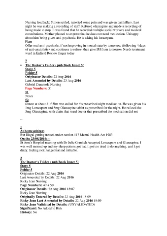 St Ann’s Hospital meeting with Dr Julie Cranitch Accepted Lorazepam and Olanzapine. I