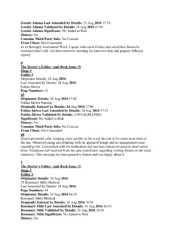 level. Telephone call received from his care coordinator regarding visiting Simon on the ward
