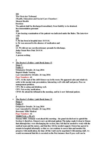 CP10: He attend his tribunal in the morning, and he is now Informal patient.
