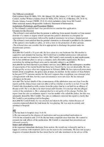 reports and the clinical team were not able to tell us whether or not he is on bail. It was Mr