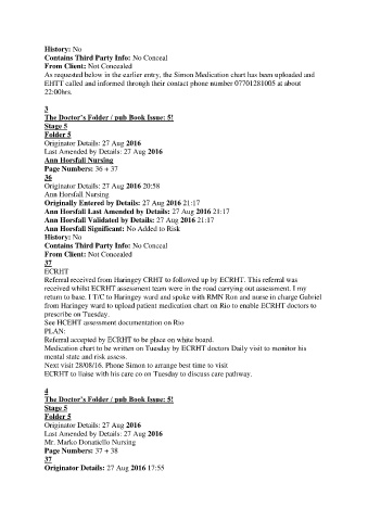 return to base. I T/C to Haringey ward and spoke with RMN Ron and nurse in charge Gabriel