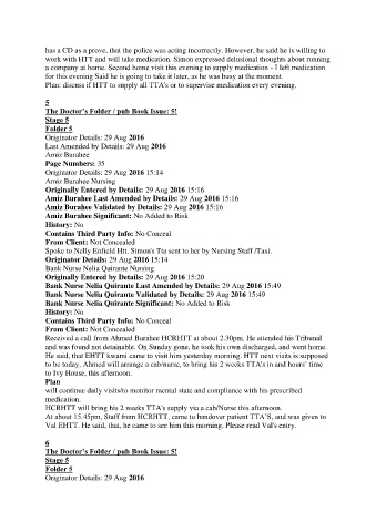 work with HTT and will take medication. Simon expressed delusional thoughts about running