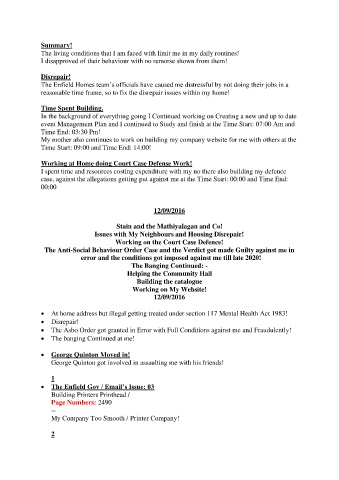 Working on the Court Case Defence!