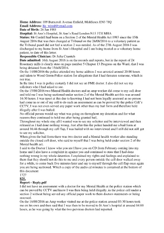 Status: Mr Cordell had been on a Section 2 of the Mental Health Act 1983 since the 15th