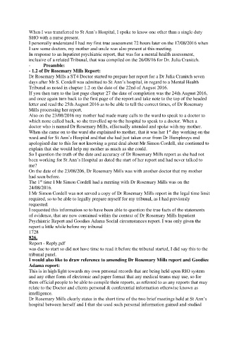 of evidence, that are now contained within the context of Dr Rosemary Mills Inpatient