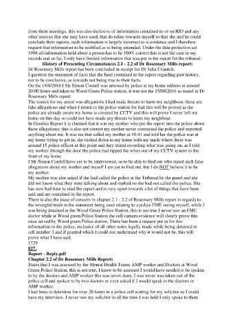 - History of Presenting Circumstances 2.1 - 2.2 of Dr Rosemary Mills report: