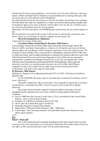 - Psychiatric History Regarding Dr Rosemary Mills Report: