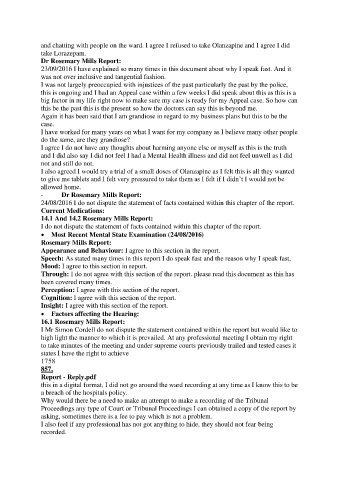 and chatting with people on the ward. I agree I refused to take Olanzapine and I agree I did