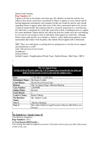 talked to him about a psychiatric assessment re fitness to appear in court. Simon said he