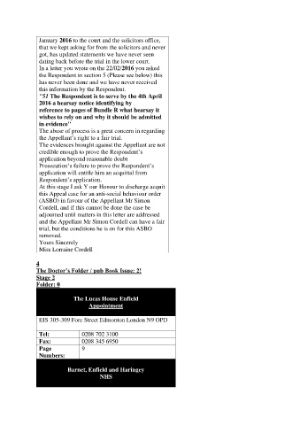 January 2016 to the court and the solicitors office,