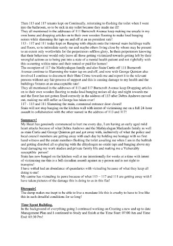 113 - 117 and 111 today kept on Banging with objects onto the internal main buildings walls