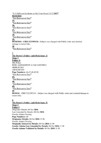 “X 9 Different Incidents on Met Com Noted 12/12/2017”