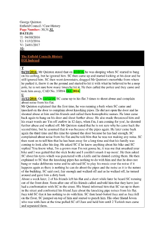11/12/2016: On 11/12/16, SC came up to his flat 3 times to shout abuse and complain