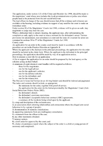 - the application for the order (in the format provided by the Magistrates’ Court (Anti-