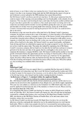 In reference to the case were the police office had lied to Mr Simon Cordell’s insurance
