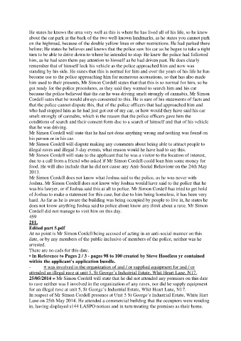 25/05/2014 = Mr Simon Cordell will state that he did not attended any premises on this date