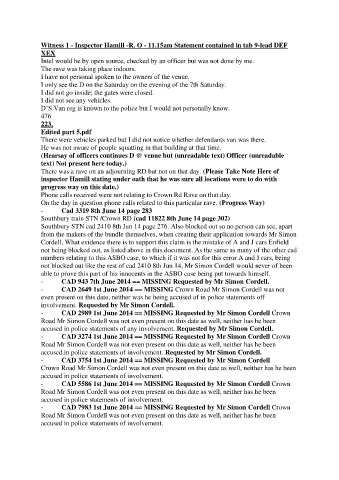 Witness 1 - Inspector Hamill -R. O - 11.15am Statement contained in tab 9-lead DEF