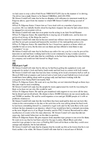 Officer Pc Edgoose States: He gets requests from anarchist type groups to run raves for them.