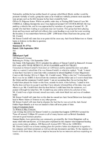 Mr Simon Cordell will state that he disputes the fact that he was served the Anti-Social