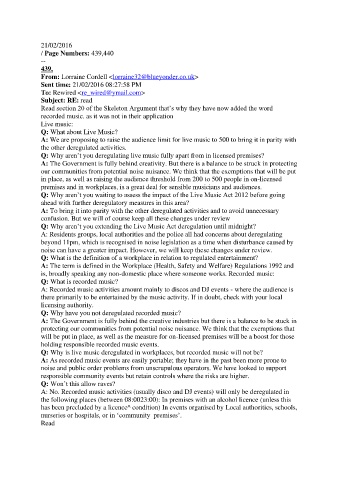Q: Why aren’t you deregulating live music fully apart from in licensed premises?